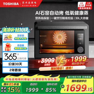 东芝(TOSHIBA)【国家补贴】蒸烤一体机家用台式多功能电烤箱蒸箱空气炸锅AI自动烤低氧蒸30L大容量ER-XE7302目前活动价:2047.65元!