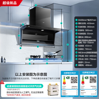 装修房子的时候安装这个看中的油烟机尺寸留位置的,装上好好看,还没有用不到入住的时间客服很好也很耐心问我尺寸什么的五星好评,声音小,风量大,颜值高,款式新,燃气灶火力大,发货快,售后好,老家装修果断选这个牌子,客服也很热情,给力!商品已收到,有师傅帮忙安装了,京东电器还是很放心的油烟机非常好用,很满意的一次网上购买电器,效果很好电器一直选择京东,没有例外,这个油烟机也是看评价才买的,外观简约大方,噪音也很小,有需要的朋友可放心购买