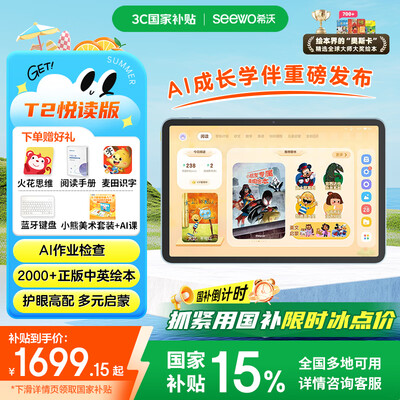 希沃AI学习机V2 Pro高思版 儿童护眼学习平板 电脑小学到高中 学练机早教机 教学一体机6G+256G极光蓝目前活动价:2549.15元!