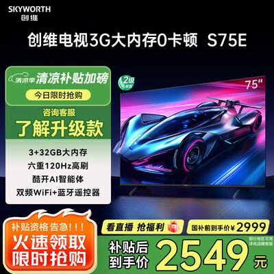创维电视S55E电视英寸高刷,+ 节能版,画质清晰,高刷流畅,+内存够用,运行流畅,外观简约时尚,性价比高。这款电视很满意,屏显清晰,视听体验不错,性价比特别高,相信品质,看着舒服师傅人很好,安装也很迅速,五星满分尺寸很大,外观好看,送货****好电视很轻薄,很好用,送货很快,上门验货,推荐购买,声音也好,尺寸标准,很时尚的款式