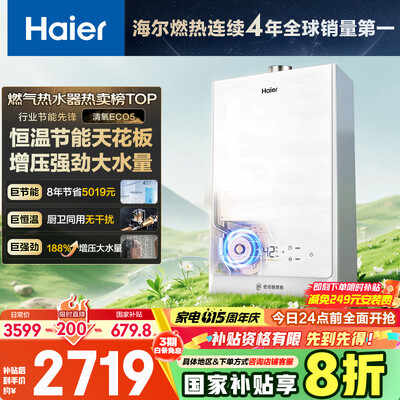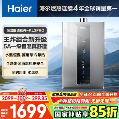 海尔(Haier)【K系列KL3PRO】16升燃气热水器天然气家用 水伺服恒温 一厨两卫适用【国家补贴15%】 一级静音目前活动价:1741.65元!