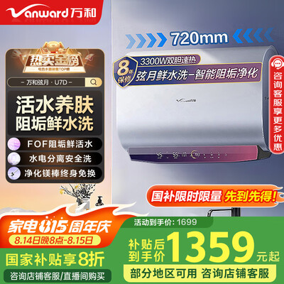 万和(Vanward)【恒净Q8】国家补贴20%电热水器60升内胆免清洗3300W速热一级能效水电分离终身免换镁棒家用储水式目前活动价:718.4元!