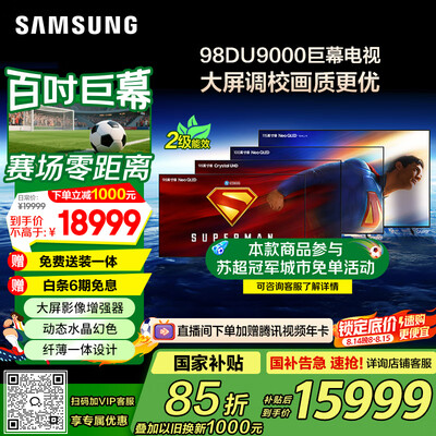 三星(SAMSUNG)98DU9000 98英寸AI电视 超薄4K无开机广告大屏影院 UA98DU9000JXXZ 100 二级能效补贴【金晨推荐】目前活动价:16999元!