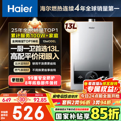 海尔(Haier)【MODEL】13升燃气天然气热水器家用 节能省气 低水压启动【国家补贴15%】静音速热13MODEL(12T)U1目前活动价:551.65元!