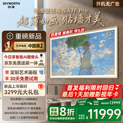 创维壁纸电视A7F Pro 85英寸超薄壁画艺术mini led电视机85吋 平板智能家电液晶电视 国家补贴A7E Pro目前活动价:11999元!