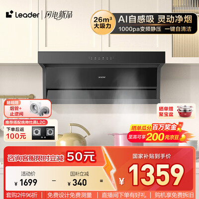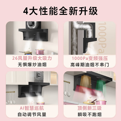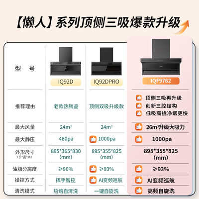 海尔(Haier)懒人油烟机 顶侧三吸自清洁抽吸排油烟机92Dmax Ieader出品 26风量1000pa国家补贴20%小黑翼9762目前活动价:1798元!