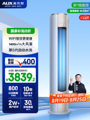 奥克斯(AUX)3匹 净享风柜机 家电国家补贴 新一级 客厅节能省电 超远风 大风口KFR-72LW/BpR3AQE1(B1)立式空调目前活动价:3839.2元!