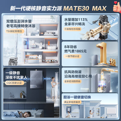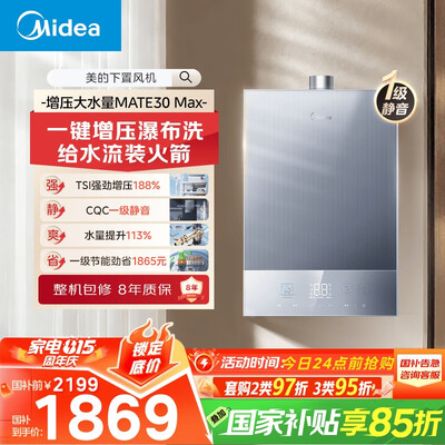 美的(Midea)【MATE30 Max】16升燃气热水器天然气增压 一级静音 恒温大水量小体积JSQ30-MATE30 Max 国补15%目前活动价:1869.15元!