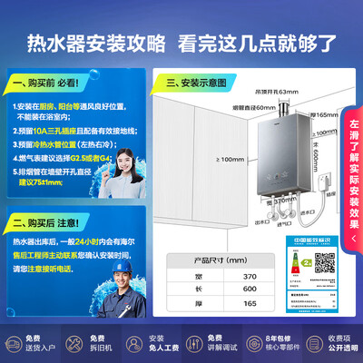 坐标广西南宁,安装师傅非常靠谱,给安装的时候特别给力。给海尔燃气热水器KL7S的师傅点赞,棒!热水器收到了。物流很快,上门安装的工人也很负责,安装的很用心,商品样子很喜欢,还没使用,等用过后再追评。海尔燃气热水器KL7S热水器经济实惠,美观大方,出水很快,安装也很快,客服态度也很好。物流非常块,安装师傅也非常热心,装上晚上使用完感觉非常好!送货很快,第二天就到了。产品功能很强大,零冷水和水量伺服同时支持,希望后面安装和使用都很好,支持国货