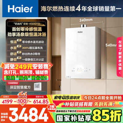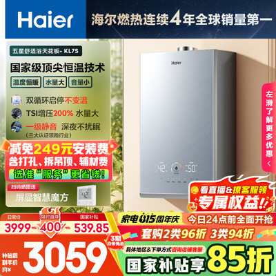 海尔(Haier)【双循环KL7S】16升燃气热水器天然气家用 全程7A一级恒温 TSI增压200% 一级静音【国家补贴15%】目前活动价:3059.15元!