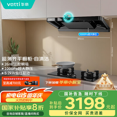 华帝(VATTI)【小飞碟】官方超薄三腔欧式一级能效抽油烟机变频26风量5.2kW燃气灶具烟灶联动 S36【套装商品】目前活动价:2690.4元!