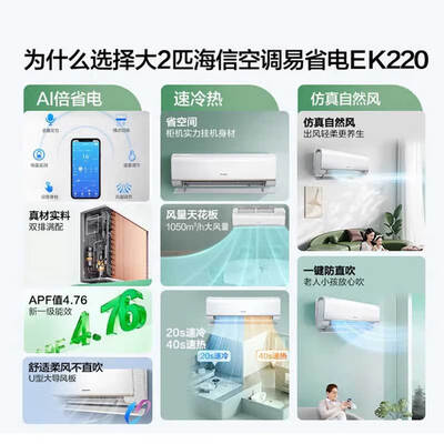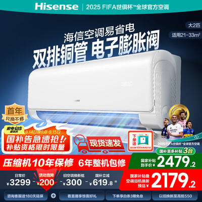海信(Hisense)大2匹/大3匹 易省电220 AI省电 速冷热 空调挂机 2025版 新一级智能变频 家用壁挂式 政府补贴空调 大2匹 一级能效 客厅2匹挂机 国补50K220D 内外机自清洁+目前活动价:2479.2元!