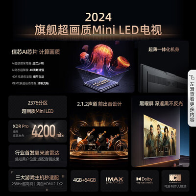 海信(Hisense)85E8N Ultra 85英寸 信芯AI芯片 5376分区Mini LED 黑曜屏Pro 超画质电视 超薄液目前活动价:25212元!
