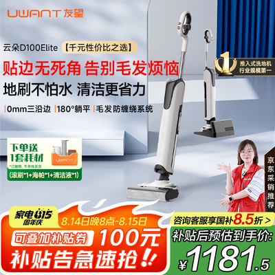 uwant友望云朵D100Elite洗地机洗拖吸一体自动清洗 家用智能手持吸尘拖地机 0重力手柄 推入式180°平躺目前活动价:1096.5元!