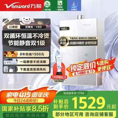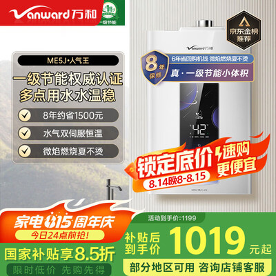 万和(Vanward)【ME5J16·真节能认证】【国家补贴15%】16升燃气热水器天然气 智控水伺服恒温 家用速热防冻静音目前活动价:1018.3元!