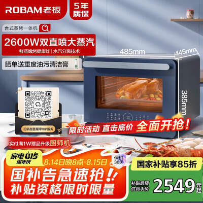 老板(Robam)【台式免安装】CT075X蒸烤箱一体机台式 32L容量双水箱 珐琅搪瓷内胆家用蒸箱烤箱空气炸锅三合一目前活动价:3248元!