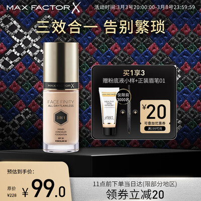 蜜丝佛陀(MAXFACTOR)定妆防晒遮瑕三合一粉底液40号象牙白30ml自然哑光长效持妆到手价格139.0元。