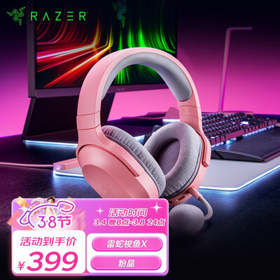 雷蛇(Razer) 梭鱼X2.4G 头戴式游戏耳机耳麦带麦克风电竞无线USB-Type C跨平台兼容 梭鱼X粉晶(Type-C 2.4G无线跨平台兼容)到手价格399.0元。