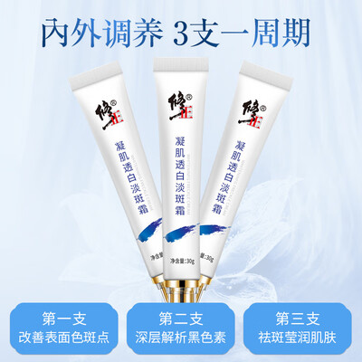 修正凝肌透白淡斑霜3支装之前买了三支用着还可以,趁着三八有活动又买了三支,包装和之前不一样了,不知道是不是换包装了过段时间用完了再用新的试试,左边之前的,右边新买的,之前用了修正的其他产品感觉还可以,所以又买了这个,但是还没用多久,没看出明显的效果,再用一段时间看看吧。。。。。。。。。之前在他家买过单只的,滋润好吸收,而且脸上的斑明显的淡了好多,这次特意买这个三支装的,省事方便。估计再用个一周期斑点就可以消失啦双十一搞活动凑单购入,单从价格上来说还是挺美丽得!效果嘛,个人觉得只要不加重就算是?效果吧,淡斑是个很漫长的过程,长斑也是由多方面原因造成的,所以重点来了,在涂抹此产品的同时要注意饮食和睡眠以及身体状况