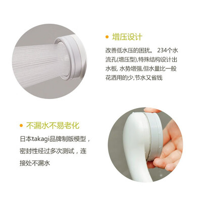 takagi淋浴花洒这质量真是太意外了,实物美美哒,触感很好,很推荐哦~买了两个了,太好用了,虽然贵了点,但是比其他好用多了这个真的太?了,?包装很精美,宝贝做工比较精细,商家特别好?,有问题都及时处理?,确实是一次相当满意的网购,还会再来的?花洒效果很不错,但是冬天用的话会有点冷,出来的水很细很柔和,就是打到身上已经开始凉了,这花洒适合夏天再用,好评