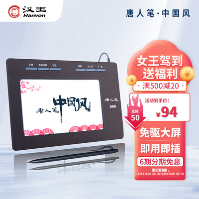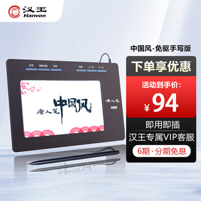 汉王(Havo)唐人笔中国风plus 免驱大屏手写板 电脑写字板、老人手写板、电脑手写板 不支持网课到手价格99.0元。