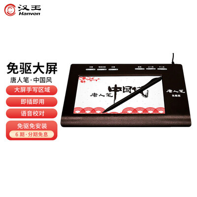汉王(Hanvon)手写板反应灵敏,写字很流畅。但是如果写的字不是彩色的,以及选字区域更大,那就更适合老人家,更完美了。下次会回购吧,主要性价比很高了。非常好的一款宝贝,用着很方便,也不占地方,很实用很快就到了,全新正品?,包装很仔细,没有问题很快就到了,全新正品?,包装很仔细,没有问题用起来挺简单,连接上就可以,写字还可以,连笔字也能识别,写字方便