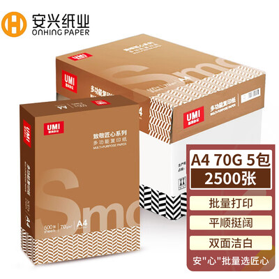 安兴 匠心A4打印纸70g复印纸多功能办公家用A4纸双面电打纸 草稿纸整箱热销70克 500张包 5包箱(2500张)到手价格102.0元。