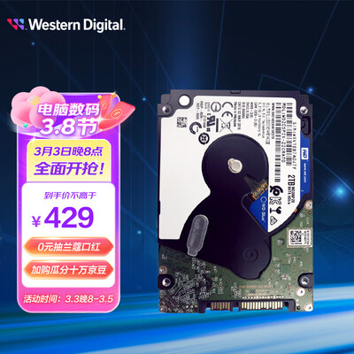 西部数据 笔记本硬盘 WD Blue 西数蓝盘 2TB 5400转 128MB SATA (WD20SPZX)到手价格439.0元。