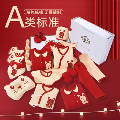 INSAHOYEF042朋友生小孩,还没出月子,送朋友的新生儿衣服套装。礼盒包装,外包装还不错,挑的这套福字图样,简约大气有内涵,简约美,很赞??式样多,礼盒装很适合送礼,已经回购一次了,看起来很贵的样子,商场里买这种类型的很贵了,还是京东买吧送给朋友的,真心挑了很久,她说特别喜欢,手感摸上去特别不错,全套装备的设计也特别可爱。礼盒包装得也特别精致好看,就像是精心准备的一样,非常棒!买来送用给刚满月的小宝宝,面料柔软,款式漂亮,包装也好看