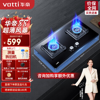 华帝(VATTI)燃气灶 家用4.2kW台式嵌入式 易打理钢化玻璃熄火保护双灶台灶具JZT-i10051B(天然气)目前活动价:799.00元!