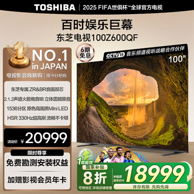 东芝电视100Z600QF 100英寸 音画双芯Mini LED 火箭炮音响 330Hz 4K高清智能 以旧换新家电国家补贴首页购物车我的客服手机查看反馈到手价格20999元。
