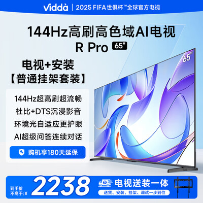 Vidda R Pro 65英寸【送装一体版】海信电视 144Hz高刷 AI游戏液晶巨幕大屏电视以旧换新65V1R-S首页购物车我的客服手机查看反馈到手价格2238元。