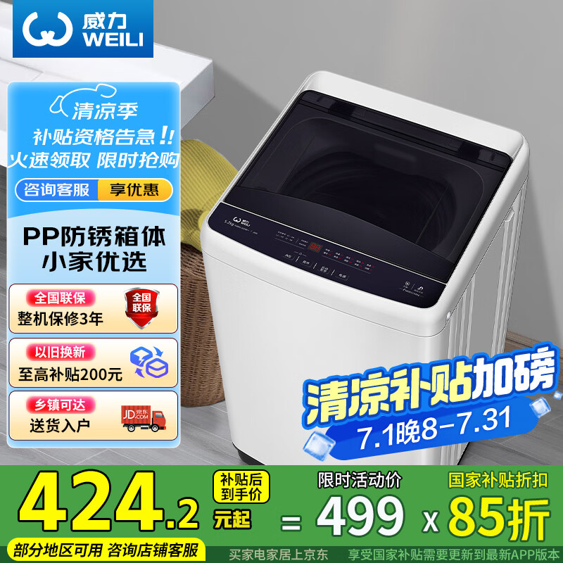 威力(WEILI)5.2公斤 波轮洗衣机全自动 洗衣机小型 租房宿舍神器 以旧换新(雅白色)XQB52-5226B-1 国家补贴到手价格499元。