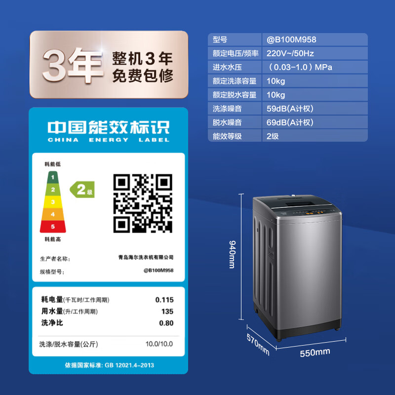 安装非常快速,双筒的贼有质感,感觉筒面还是镜面一样,特别高级,双筒可以同时洗烘,大筒容量也够。使用很方便,期待清洁效果了!是正品,我先实体店看了才下单,比实体店便宜*,值得购买。安装师傅很用心,很快就上门安装洗衣机统帅@B100M958外观大气美观,造型好,看起来有档次,洗衣服相当干净,也不伤衣服,也不会卷成一团,价格不贵,性价比相当高,一次不错的购物。还是老品牌靠谱,刚好碰上以旧换新活动,价格很优惠,衣服洗的很干净,机器运行的声音也偏小很不错的购物体验,使用后觉得生活轻松多了。智能洗涤功能真心好,省时又省力,衣服洗得干净,操作也简单,特别适合忙碌的家庭!