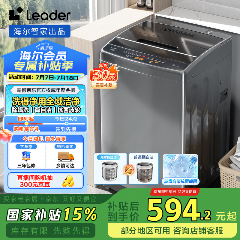 统帅(Leader)海尔智家出品 波轮洗衣机全自动10公斤 宿舍租房排名前十 以旧换新 家电国家补贴 @B100M958到手价格729元。