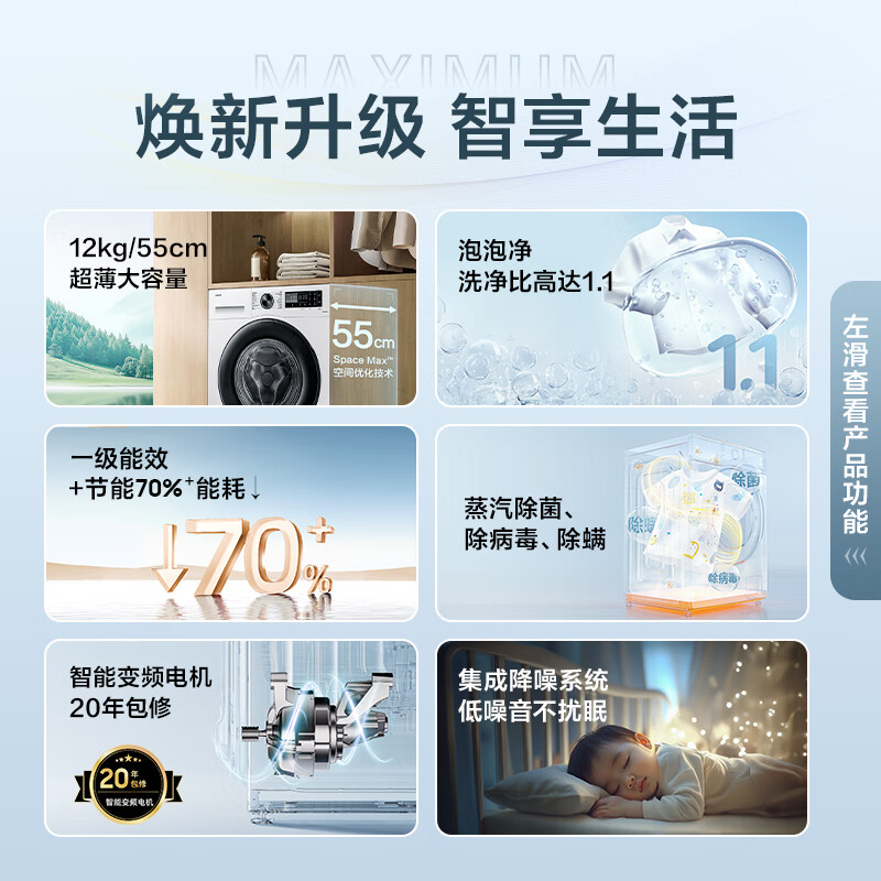 三星WW12DG5B24AWSC整体颜值在线,十分搭配我家风格。且尺寸也比较合适,适合小户型。容量也够用。装好后,试运行了一下,声音也可以接受。推荐!性价比高,老品牌了。出租房用够用了,目前用着还不错。客服耐心细致解答问题很及时,物流快洗衣机的活动很划算,洗衣机的外面也很好看,噪音也很小,这个价格可以买到这个洗衣机还带烘干功能真是太棒了!别犹豫 速买洗衣机收到了,包装完好,物流非常快,一直都用的洗衣机,质量杠杠的,喜欢的可以放心下单了千呼万唤终于到了,没货等了快一个月。今天装上了,很惊喜,颜值真的很高,试用了下,声音也不大,可以接受。洗衣效果还得再看看。