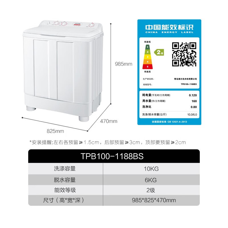 洗衣机统帅TPB100-1188BS哪个好?有区别吗?其实这款统帅(Leader)海尔智家 半自动双桶洗衣机10公斤 旋风水流强力去污 以旧换新 家电国家补贴 1188BS确实蛮可以的,成熟大气的造型设计和外观,做工很细腻,不少人想要知道这款统帅TPB100-1188BS怎么样?值得入手吗?说实在的这洗衣机统帅TPB100-1188BS个人使用体验后觉得确实可以的哈,刚入手不久的,这款洗衣机非常好用,洗衣效果非常好,衣物洗得干净且不伤害衣物的质地。洗衣机的噪音也非常小,使用起来非常安静。它的容量很大,可以一次性洗很多衣物,非常方便。洗衣机的操作也很简单,按键清晰易懂,不需要过多的设置。洗衣机的外观设计也很漂亮,很适合放在家里使用。总体来说,这款洗衣机性价比很高,非常值得推荐 洗衣机统帅TPB100-1188BS预留的位置有限,看了好多壁挂洗衣机尺寸都不合适,这款正好合适,颜值很高,经典的黑白配色,而且功能能满足基本需求,很满意噢 洗衣机很好用,大小正好放进去,洗衣服声音很小,脱水效果也蛮好的,家里买的第二台了,喜欢 双活动价钱优惠,送货上门,还没使用,等使用后再追评使用的效果,洗衣机外观设计好看,外观时尚,多功能,好品牌,值得购买。 外形外观:非常好看洗净效果:这个价钱挺合适的,不错除菌效果:不错容量大小:适合小孩用
