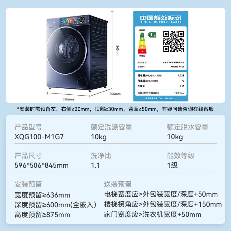 二、松下XQG100-M1G7产品参数: