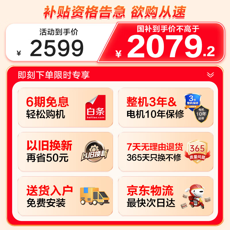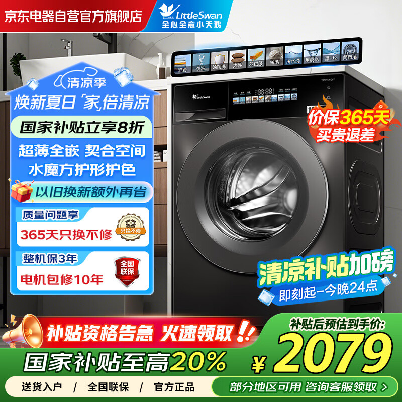 小天鹅(LittleSwan)滚筒洗衣机全自动家用10公斤大容量水魔方 超薄全嵌 深层除螨 以旧换新 家电国家补贴20% 一级能效到手价格2699元。