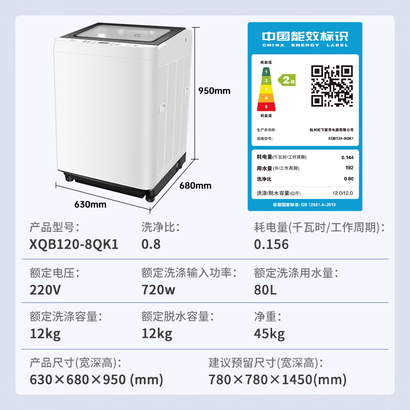 二、松下XQB120-8QK1产品参数: