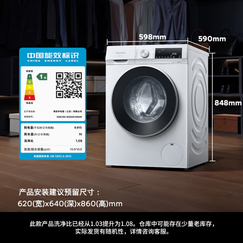 洗衣机西门子洗衣机XQG100-WG52A100AW哪个好?区别是什么?其实这款西门子(SIEMENS)iQ300 10公斤滚筒洗衣机全自动 智能除渍 强效除螨 防过敏 15分钟快洗 100AW 家电国家补贴的确是蛮不错的哟,高超的外观造型,做工非常讲究,不少人想要知道这个西门子洗衣机XQG100-WG52A100AW怎么样?使用评价好吗?说实话这个洗衣机西门子洗衣机XQG100-WG52A100AW个人使用过一段时间后感觉蛮可以的哈,刚购不久的,由于家里阳台小,洗衣机只能横着放,还得考虑进水、排水朝向,买洗衣机不太容易,我们在网上看了多款洗衣机,综合对比后选择了这一款。下单后店家发货很快,物流也给力,两天不到就到了,实物比照片要更大气、漂亮,尺寸也合适,洗衣效果杠杠滴,洗的干净,脱水效果也很好,很满意!总结一下就一句话,性价比高,物超所值。 洗衣机西门子洗衣机XQG100-WG52A100AW洗衣机外观漂亮上档次,我们放在厨房的,超静音,这点非常满意,洗得也很干净,家里两部洗衣机都换成的了,推荐给大家!值得下手 洗衣机外观很好,颜色也很好看,用起来很好,声音不大,物流速度也很快,有需要的放心购买吧。 洗衣机非常不错值得购买,加上有政府补贴和以旧换新,性价比拉满,洗净比不错,功能也非常多,操作简单方便,容量大非常适合家用。 宝贝洗衣机收到了,我也是试过了,这款机器真的不错哦,洗出衣服跟干没啥区别啊,值得信赖啊!