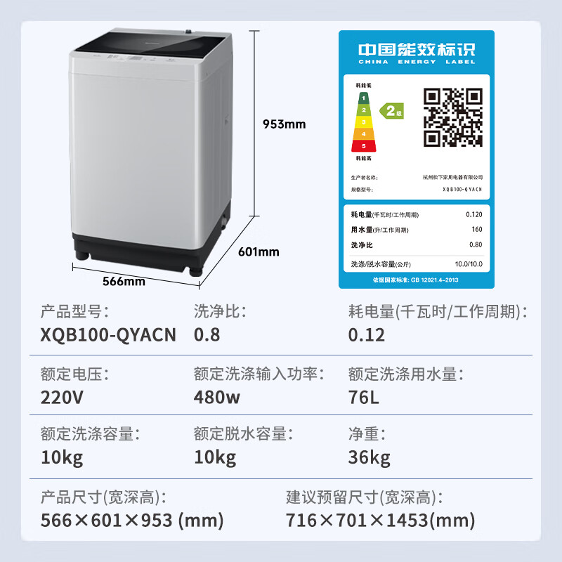 二、松下XQB100-QYACN产品参数: