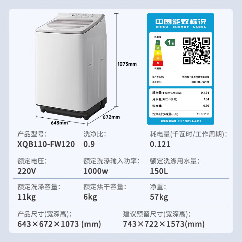 二、松下XQB110-FW120产品参数: