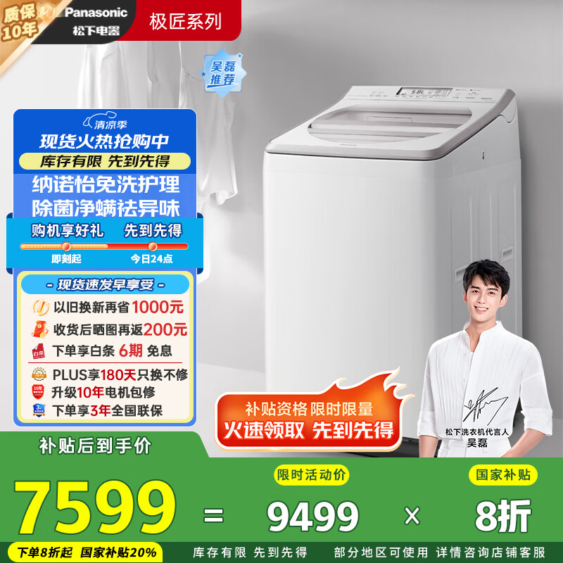 松下(Panasonic)波轮洗衣机全自动11公斤大容量带烘干洗烘一体 纳诺怡除菌除螨家电国家补贴20% FW120到手价格9499元。