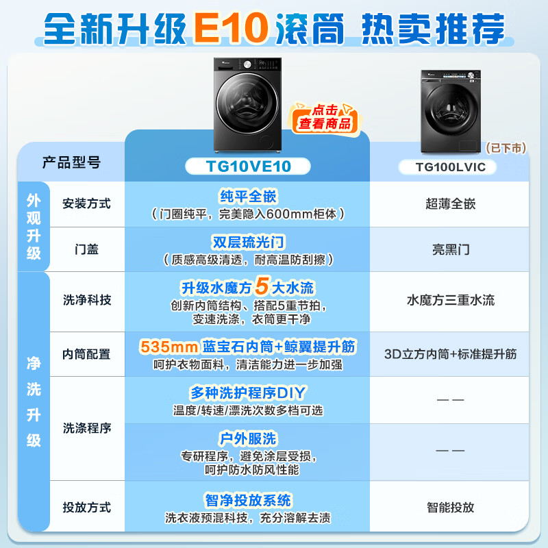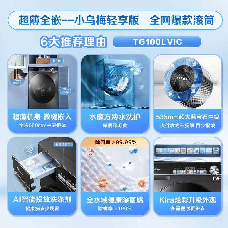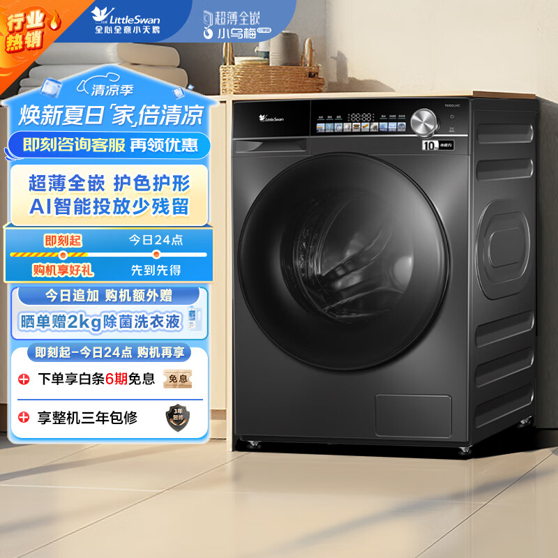 小天鹅(LittleSwan)滚筒洗衣机全自动家用 超薄全嵌【小乌梅轻享版 TG100LVIC】10公斤 推荐购买升级款E10 国家补贴到手价格3099元。