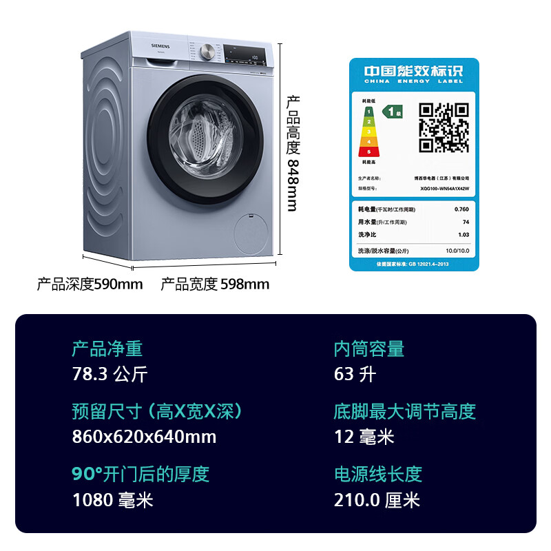 洗衣机西门子XQG100-WN54A1X42W哪个好?有区别没有?其实这个西门子(SIEMENS)10公斤滚筒洗衣机全自动带烘干 洗烘一体 蒸汽除菌 热风清新 双重净筒 X42W 家电国家补贴的确是不错的哟,奢华的外观造型,做工还真挺讲究的,不少人想要知道这个西门子XQG100-WN54A1X42W怎么样?评价如何?实实在在的说这个洗衣机西门子XQG100-WN54A1X42W使用过一段时间后个人觉得蛮可以 的哈,我自己也是才购没多久的,洗完后污渍该在那还是在那,根本没达到我预想中的清洁效果,这运行时的噪音,宣传里号称采用了“超静音这洗衣机要是光看外表、听宣传,确实很容易让人种草,但实际用下来,这些隐藏在“华丽外表”下的问题真的太影响日常使用了,希望厂家能重视起来,好好改进,别辜负消费者的信任,也给打算购买的朋友们提个醒,多做做功课 洗衣机西门子XQG100-WN54A1X42W物流快,家里在七楼没有电梯,快递师傅还送货上门了!虽然是老式洗衣机但是洗的很干净。安装方便。比实体店便宜很多,推荐购买! 洗衣机很好,外观很漂亮,使用起来很方便。没有噪音,烘干效果特别棒,一次非常棒的购物体验 很好大尚的一个洗衣机,内筒也够满足一家人的洗衣需求,洗衣服也很干净各种功能都很齐全还很静音!物流也很给力师傅也很友好礼貌! 大小正好,颜色我喜欢,跟商家说的一样,物流很快这几天不在家,没有拍视频,想买的赶快下手