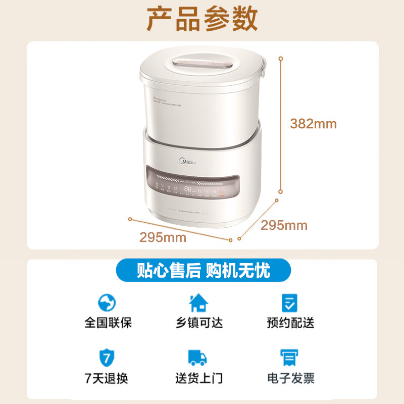 洗衣机收到了,是正品,真的很不错,颜值很高,包装很严实,快递小哥态度非常好,送货上门。客服他和她超级棒,随时解答疑问。特别适合打工人租房子用 性价比很高洗净效果:洗的干净 在广东甩干了晾几个小时就干了不错洗衣机美的洗衣机MFB5VADE质量非常好,完全超出期望值,发货速度非常快,包装非常仔细、严实,很满意的一次购物,给父母买的,用不惯全自动,所以买这个啦全自动洗衣机样式漂亮,洗涤衣物时噪声低,衣服洗的很干净。很满意,已向朋友推荐该产品。这个洗衣机小巧精致,清洗很干净,被盖四件套没问题。我选它就是冲着他物美价廉来的。买了一段时间了,洗了好几次,没啥毛病。