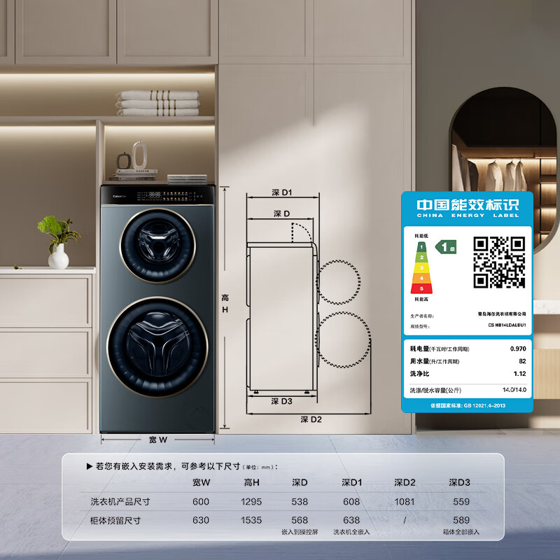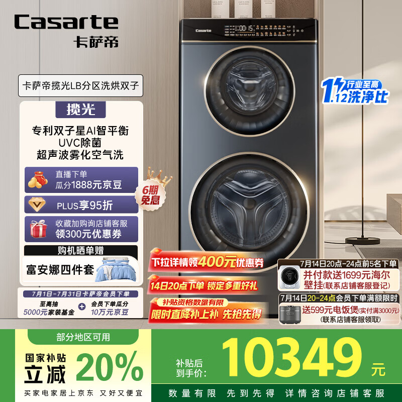 卡萨帝(Casarte)揽光14LB分区洗烘双子滚筒懒人洗衣机全自动14公斤洗烘一体双筒 HB14LDALBU1 家电补贴国家补贴20%到手价格13999元。