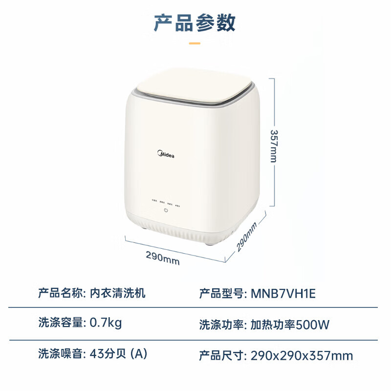 洗衣机美的MNB7VH1E哪个好?区别是?实际上这个美的(Midea)0.7公斤内衣洗衣机家用内衣裤迷你懒人洗衣机高温除菌洗袜子全自动洗脱一体机不锈钢内桶MNB7VH1E不错的 哟,高超的外观造型,做工非常讲究,有些朋友有疑问这美的MNB7VH1E怎么样?口碑如何?说真心的这洗衣机美的MNB7VH1E体验过一段时间后个人觉得可以 哈,才购买不久的,到货了,颜值是真的很高,透视烘干功能可以动态扫描衣物状态,双擎热泵采用双电机烘干更均匀,空气洗护理让衣物更加柔顺防静电,很赞很好用,的产品质量真的不错,白色看上去干净清爽,颜值超级高,烘干功能使用过,不皱,烘干得也均匀,洗衣脱水噪音也不大,运行特别平稳,而且声音特别安静。京东自营的品质之选 洗衣机美的MNB7VH1E洗衣机大小正合适,洗涤效果也不错,洗出来的衣服很干净,没有太大的噪音,家里用正合适,甩干桶大小也合适,物有所值,很满意 质量非常好,与卖家描述的完全一致!非常满意,真的很喜欢,完全超出期望值。发货速度非常快! 这款洗衣机外观时尚,操作简便,洗涤效果非常出色,非常满意;这款洗衣机外观时尚,操作简便,洗涤效果非常出色,非常满意; 洗衣机收到了,太惊喜了,质量非常好,性价比很高,真是出乎我的意料!而且很安静,洗的很干净