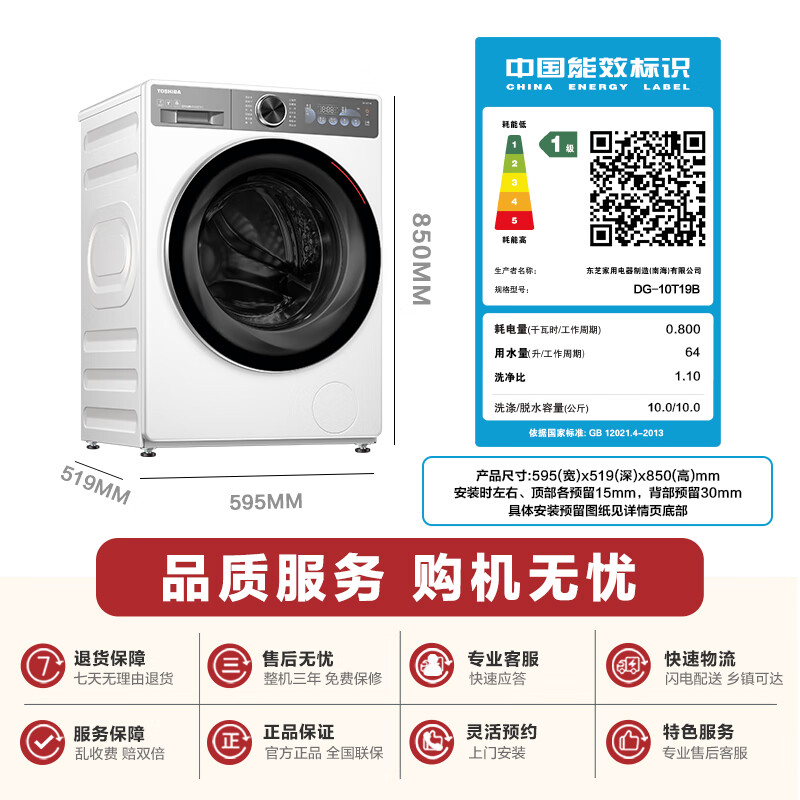 洗衣机东芝DG-10T19B哪个好?区别大不大?这个东芝(TOSHIBA)滚筒洗衣机全自动家用【玉兔2.0 DG-10T19B】超薄全嵌 10公斤大容量 以旧换新 家电国家补贴20%蛮不错的哟,精美的造型设计和外观,做工非常讲究,不少网友想要知道这款东芝DG-10T19B怎么样?谁用过评价?说实在的这个洗衣机东芝DG-10T19B使用体验后个人感觉蛮可以的,刚入手没多久的,这款商品的质量真的很棒,性价比超高,我已经推荐给我的朋友们了。这款商品的质量真的很棒,性价比超高,我已经推荐给我的朋友们了。这款商品的质量真的很棒,性价比超高,我已经推荐给我的朋友们了。质量很好,完全对得起这个价格!材质很好,质量也不错,到货也很快宝贝物超所值,很喜欢,下次还会来的 洗衣机东芝DG-10T19B年不见的又重到我家 可以联网 对于晾衣服在楼上的很方便 手机一看就知道洗完没 省的要多跑去看 原有跟的的再配个中型的 已收到货,洗衣机容量大,轻松解决家庭洗衣需求。波轮设计洗净力强劲,省心又省力。物超所值! 外形外观:外形简洁大方洗净效果:洗衣服挺干净,声音比较小除菌效果:还不错容量大小:容量大以旧换新:上门取货,非常方便 洗衣机收到了,外观小巧可爱,颜色非常喜欢,公斤足够用了。包装严实,面板上显示的非常清楚。